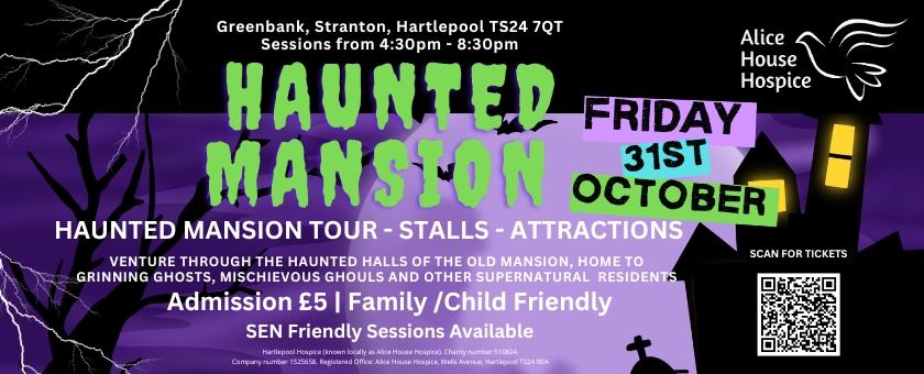 This Halloween, Alice House Hospice invites families to Hartlepool’s first Haunted Mansion for an evening of spooky fun, laughter and surprises.