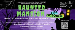 Join us at Greenbank on Friday 31st October 2025 for Alice House Hospice's Haunted Mansion, in partnership with Artistic Solutions Ltd.